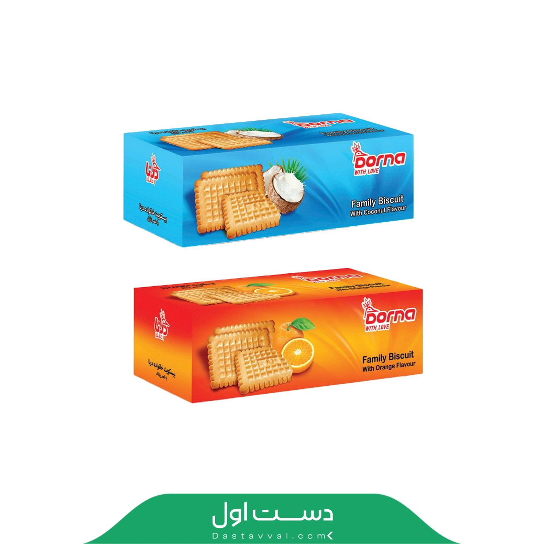 بیسکوئیت خانواده درنا (نارگیلی و پرتقالی)بیسکوییت خانواده درنا با طعمهای نارگیلی و پرتقالی، بستهای مناسب برای مصرف خانوادگی است. این بیسکوییت با بافتی ترد و طعمی خوشطعم، تجربهای لذتبخش و متنوع برای کودکان و بزرگسالان فراهم میکند و گزینهای عالی برای میانوعده و پذیرایی در جمعهای خانوادگی است.